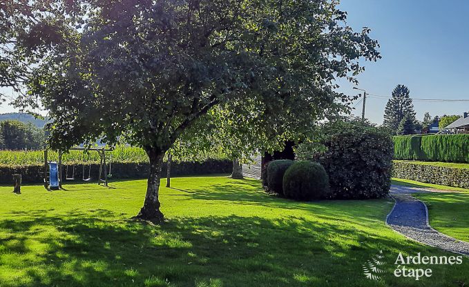 Je volgende vakantie breng je door in een gehuchtje in de mooie streek rond Bouillon, waar je met heel het gezin geniet van ontspanning en actie. Dit prachtige vakantiehuis is zo uitgerust om van je verblijf een bijzonder ontspannende vakantie te maken. De luxueuze inrichting zal je bekoren, net zoals de 4 comfortabele en aangename slaapkamers, de volledig uitgeruste keuken , de zeer aangename zit- en eetkamer en het washok (met droogkast) voor meer comfort. In de privétuin van 1400 m² met schommel kan je naar hartenlust spelen met de kinderen. De ouders genieten ondertussen van het terras van 40 m² met barbecue en tuinmeubilair.