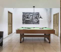 Neem de trap om het eerste verdiep te verkennen: een tweede groot salon met televisie, internetverbinding, een speelkamer met biljart en 5 slaapkamers die elk zeer gezellig zijn en mooi gedecoreerd werden. De woning heeft 4 badkamers.