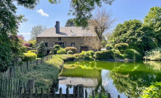 Zeer charmant huis in Ardense natuursteen met 7 slaapkamers, 5 badkamers en een enorme tuin met een vijver. Je hond is welkom.