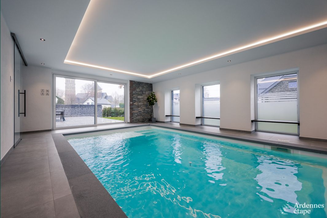 Ontsnap even aan de drukte van elke dag in dit recent gerenoveerde viersterrenvakantiehuis in Ardense steen. Deze bijzonder lichtrijke, elegante en ruime accommodatie is ideaal voor een aangenaam verblijf met vrienden en/of kinderen. Elke slaapkamer heeft – net als een hotelsuite – een eigen badkamer. Zo heeft iedereen zijn privacy! Dankzij het binnenzwembad kunnen jullie zwemmen op elk moment, ongeacht het weer. Om helemaal te ontspannen na een dag de buurt te verkennen, kunnen jullie terecht in de ontspanningsruimte, de sauna of de buitenjacuzzi. Het privéterras en de privétuin bieden een ideale setting voor gezellige momenten rond een barbecue, met comfortabel tuinmeubilair om van de buitenlucht te genieten.