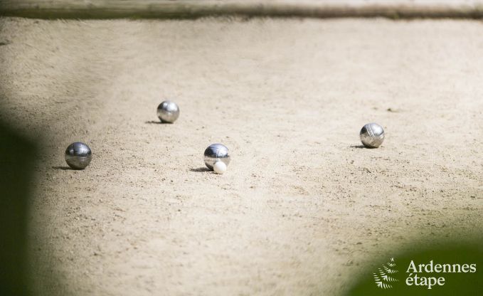 In deze vakantiewoning werd aan alles gedacht opdat een groep van 15 personen zich hier meteen thuis zou voelen. De sauna, de speelzaal en de moderne en tegelijk traditionele inrichting zorgen voor een charmante leefomgeving die je niet graag verlaat op het einde van de vakantie. Terwijl jij een aperitiefje neemt onder een parasol op het terras van de grote tuin van 1 000 m², leven de kinderen zich uit op één van de speeltuigen (schommel, glijbaan en petanqueterrein) en de speelzaal met kickertafel en biljart. Wat een programma! Na een daguitstap kan je de warme sfeer terug opsnuiven in één van de 5 slaapkamers vooraleer je de talloze culinaire mogelijkheden van de fantastische keuken ontdekt. Gun jezelf een familiemomentje en bekijk ‘s avonds een leuke dvd of kies voor wat ontspanning in de sauna. Alle luxe in huis!