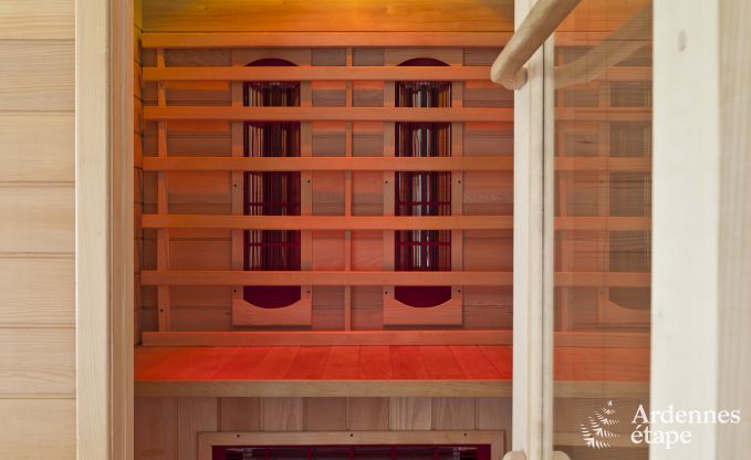 Het vakantiehuis omvat 3 verdiepingen. Het telt een zeer grote leefruimte met een uitgeruste keuken, een eetzaal, een verblijfplaats met open haard. Op de ondergrondse verdieping is er eveneens een uitgeruste keuken met een eetzaal en een woonkamer zodat iedereen over genoeg plaats beschikt.