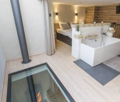 Zodra je de gite betreedt, bewonder je de schoonheid van de plaats. De eigenaren hebben twee jaar hard gewerkt voor dit perfecte resultaat. Ze combineerden lokale stenen, beukenparket, metaal en kalk om het typische karakter van de schuren te behouden. Het mengsel van deze materialen zorgt voor een harmonieuze en warme sfeer.