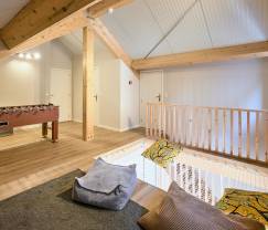 De ecochalet is uitgerust met tal van faciliteiten om je verblijf zo aangenaam mogelijk te maken. Ontspan in de infraroodcabine na een dag vol avontuur. Geniet van een gezellige avond rond de barbecue. Of smeed samen onvergetelijke momenten in de ontspanningsruimte met tafelvoetbalspel, darts en kinderspellen.