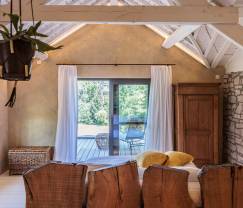Op zoek naar een paradijsje voor een weekend of een paar dagen? Een plek waar je alles kan vergeten om volop te genieten van het plezier van het samenzijn met zijn tweetjes? Dan zal je weg zijn van deze voortreffelijke en warme vakantiewoning, met schitterende materialen ingericht in een oude boerderij. Hier overvalt je een gevoel van harmonie door alle aandacht voor details die het verschil maken. Hier geniet je van het uitzicht vanaf je terras, je slaapt heerlijk in de prachtige slaapkamer, je ontspant in de tuin… Dat is pas onthaasten!
