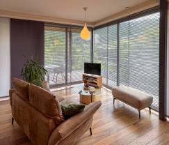 Wakker worden met een mooi zicht op de vallei van de Amblève, heerlijk. Ook vanuit de keuken/living heb je een prachtig panoramisch zicht op de omgeving van Coo. We beleefden een heerlijke jaarwisseling in deze vakantiewoning en we hebben al meteen terug geboekt in de zomer ! Drie tips: - honden toegelaten, maar hoe goed de poetsploeg haar best ook doet, volledig haarvrij is het niet - traag elektrisch kookvuur vervangen door modernere technologie - comfortabeler stoelen op het terras