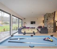 Dit huis biedt werkelijk alles om iedere gast een deugddoende vakantie te bezorgen. Veel ruimte en licht, optimaal comfort, voldoende badkamers, speeltuigen voor de kinderen, een speelzaal met biljart en tafelvoetbal ... En omdat dit vakantiecomplex uit 2 huizen met een kleinere capaciteit bestaat, zijn er bovendien 2 keukens, 2 woonkamers enzovoort. Handig! In het bijgebouw ligt een fantastisch binnenzwembad. En in de zomer kun je zelfs ontspannen in een jacuzzi. Maar de échte kers op de taart is het immense natuurreservaat rond het domein, waar je de natuur in al haar pracht kunt bewonderen en misschien zelfs wilde dieren ziet.