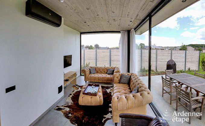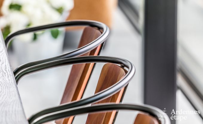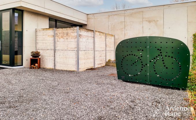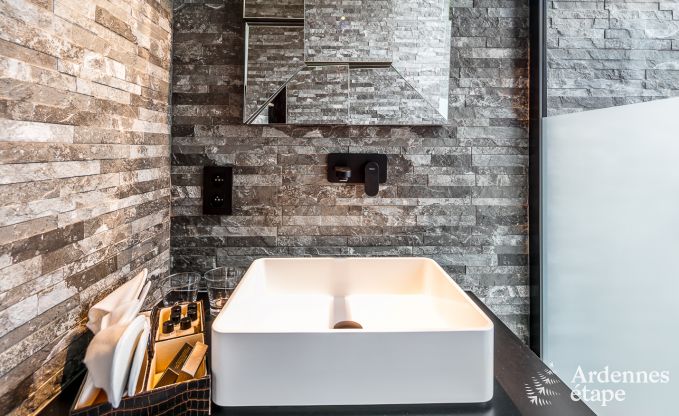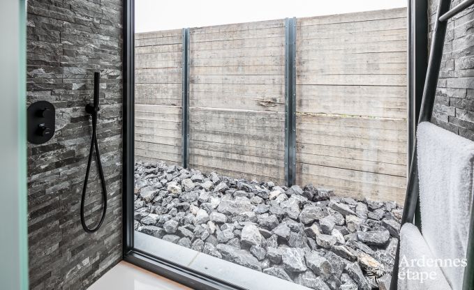 Langs de uitvalsweg van een charmant dorpje ligt dit 3,5-sterren, lichtrijke vakantiehuis. Overal in het vakantiehuisje doet de aanwezigheid van steen denken aan de ruwe natuur van de Ardennen. Via de grote glazen wanden komt er genoeg licht binnen, van de woonkamer tot in de badkamers.