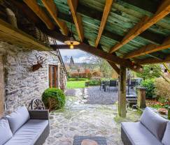 In dit typisch Ardens vakantiehuis uit 1800 geniet je van een prachtig eiken parket dat gezellig kraakt, lage plafonds met oude balken en muren in lokale steen. Resultaat? Een bijzonder knus cocon om mooie herinneringen in te maken. Slaap lekker lang uit in je warme bed. Hoor de kindervoetjes zachtjes door de gang trappelen voor de kids bij je in bed springen. Maak van ieder ontbijt een feest met heerlijk lokale producten. Geniet buiten van een lekkere aperoplank op het overdekt terras met uitnodigende loungehoek. De kids? Die kunnen ravotten in het speelhuisje achteraan de tuin. En speel 's avonds bij een knisperend vuur het ene na het andere bordspel.