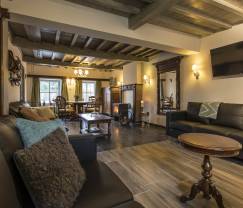 De volgende kamer is de eerste woonkamer met houtkachel en televisie en een tweede kleinere woonkamer, ook met een televisie. Er zijn dus twee lounges met een televisie in elke kamer.