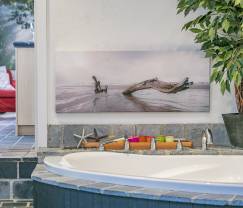 Het zwembad bevindt zich vlak naast jouw accommodatie. Een klein minpuntje is dat de gasten waarmee je het zwembad deelt voorbij jouw vakantiehuis passeren.