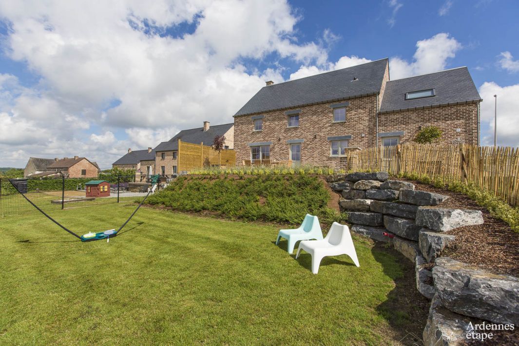 Dit prachtige vakantiehuisje in de provincie Namen zal jou verleiden met zijn nette sfeer, warme inrichting en uitstekende comfort. Uitgerust met 4 slaapkamers en 2 badkamers, zullen twee gezinnen snel hun sporen voor een verblijf vinden op basis van vriendelijkheid. De uitstekend uitgeruste keuken en de zeer nette lay-out zullen het fijnproevers mogelijk maken om heerlijke gerechten te bereiden, terwijl de kinderen neerstrijken in de speelkamer of de zitkamer met televisie op de eerste verdieping.