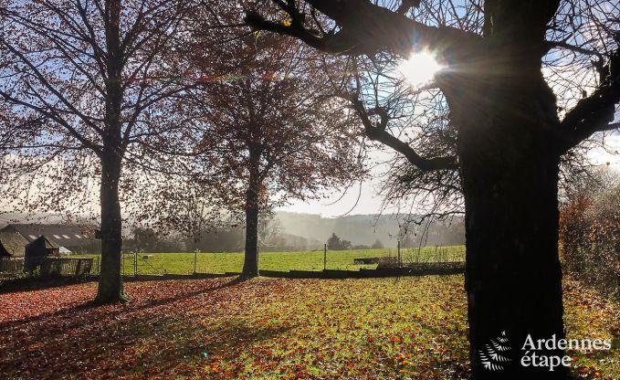 De combinatie van Ardense steen en hout zal je bekoren zodra je in dit grote vakantiehuis aankomt. De groene omgeving rond het huis dompelt je vervolgens onder in een heerlijk rustig gevoel van welzijn. Of je nu met vrienden of familie komt, dit is de perfecte plek om te herbronnen en om te genieten van het hier en nu ... Bijvoorbeeld door enkele brochettes op de barbecue te bakken of het glas te heffen voor het open vuur. Leef je uit tijdens een partijtje biljart en ontspan daarna in de sauna. Je kan zelfs je hond uitlaten in de grote, volledig omheinde tuin.