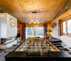 De gezellige woonkamer is en biedt een verbluffend panoramamisch uitzicht. Spelletjes tafelvoetbal met uitzicht op de natuur en de velden garanderen een heel aparte ervaring!