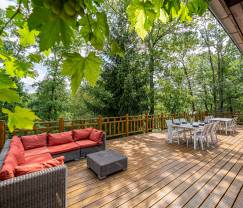 La terrasse est un gros + elle est vraiment grande ! Le jacuzzi est génial ! Il y a pleins d’ustensiles pour cuisiner et raclette, plancha, barbecue… tout est bien décoré aussi. Seul bémol une des chambres de l’annexe sentait fort les canalisations. J’en ai avertit le proprio et il a envoyé qqun pour régler le soucis. Dommage aussi qu’il n’y ai pas un accès au bois proche, il y a certes des arbres autour du gîte mais pas de forêt. Il faut faire 10-15 min de voiture pour avoir accès à une balade