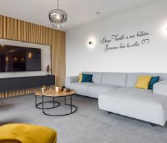 Mooie woning met alle facaliteiten - elke kamer is mooi ingericht en heeft een zeer mooie badkamer. Er mocht wel iets meer opbergruimte zijn voor kledij en handdoeken. Het huis is zeer ruim en er is een mooie ontspanningsruimte op de benedenverdieping. De zithoek in de leefruimte is wat krap voor het aantal personen wat er kan verblijven. De eetruimte daarentegen is voldoende ruim. Het terras en tuin mocht iets beter onderhouden zijn.