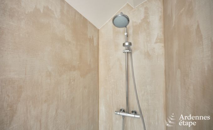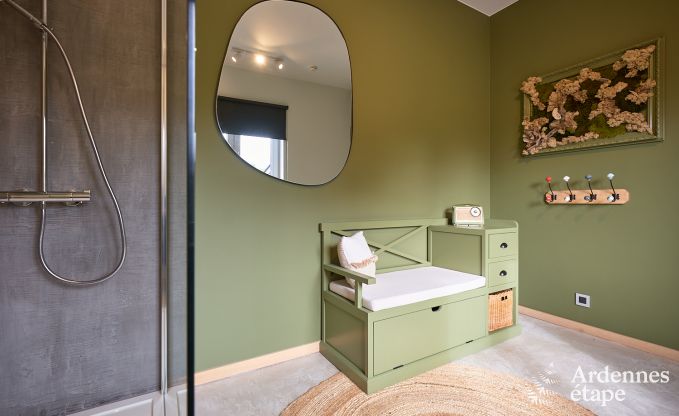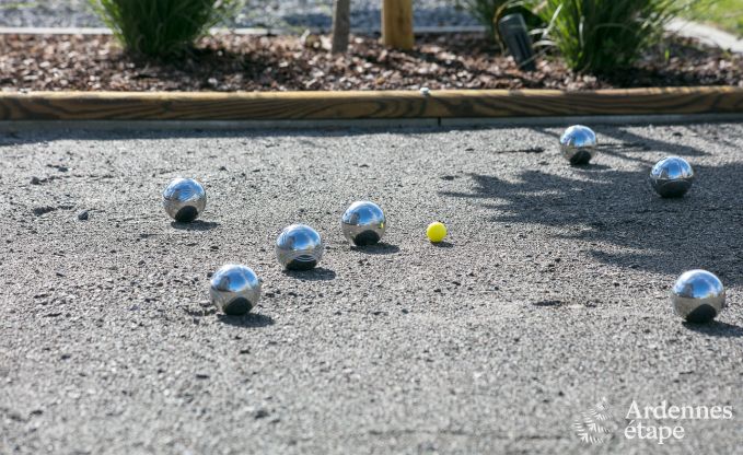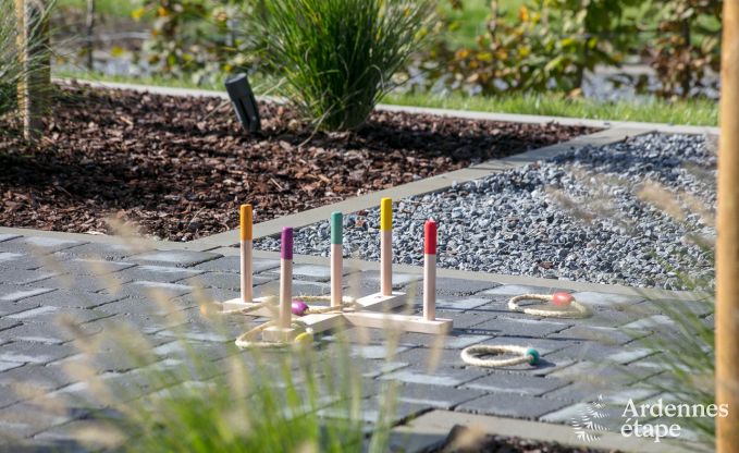 Dit gloednieuwe vakantiehuis ligt aan de rand van een klein dorpje, dicht bij bossen en een rivier. De lichte, grote leefruimte zal je meteen kunnen bekoren. De luxueuze afwerking en de verfijnde inrichting zorgen op elk moment voor een zachte sfeer. Zo worden winteravonden ultragezellig dankzij de indirecte verlichting. Ook over de verdeling van de slaapkamers werd goed nagedacht: op de begane grond ligt één slaapkamer met douche, ideaal voor wie geen trappen kan doen. De andere slaapkamers liggen boven, ver van de woonkamer. Ook op het terras en in de tuin is het genieten geblazen, met spelletjes voor de kids en een petanquebaan voor de volwassenen.