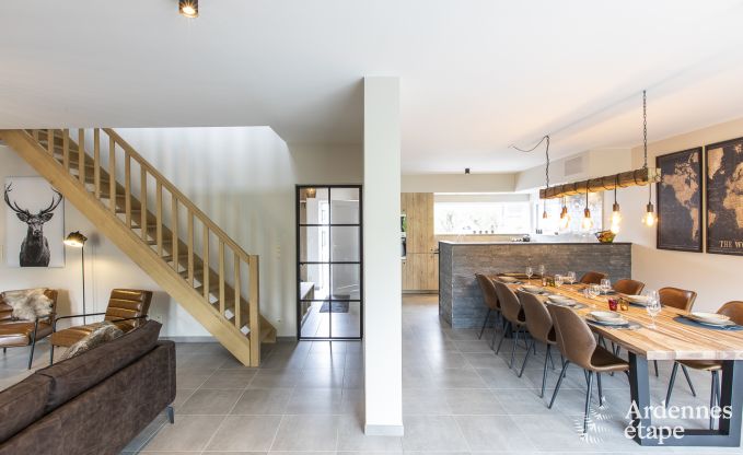 Dit vakantiehuis in Wéris met vier kamers, twee badkamers (waarvan één en suite) biedt veel ruimte, lichtinval én een grote tuin. Verken de Ardennen met het hele gezin.Door het gebruik van hout en zachte kleuren baadt dit huis in een gezellige sfeer. Ideaal voor knusse momenten met het hele gezin of met vrienden. De grote kamers bieden ruimte voor...