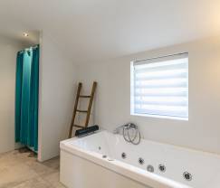 De inrichting van deze vakantiewoning is zeer licht en open. Via een mooie trap en open overloop, kom je uit bij de overige drie slaapkamers. Tevens vind je hier een tweede badkamer met heerlijk bubbelbad. Genieten! De volledig omheinde privétuin, het terras en de verschillende speeltoestellen voor de kinderen (schommel, glijbaan en klimmuur) zijn extra elementen die aan een plezierig en comfortabel verblijf in dit mooie vakantiehuis bijdragen.