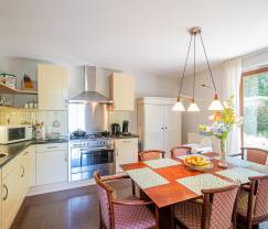 De woonkamer is uitgerust met een houtkachel, perfect om gezellige avonden door te brengen. De keuken is volledig uitgerust, zodat je heerlijke maaltijden kunt bereiden.