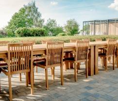 Bij mooi weer is het mogelijk om buiten te spelen. Er is een trampoline, pingpongtafel, verwarmd zwembad en een gezellig terras met tuinmeubilair.