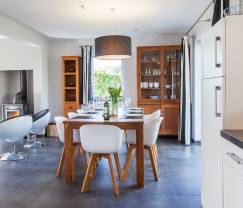 Indien je voor je vakantie met de familie op zoek bent naar een rustige locatie op het platteland, dan zal dit vakantiehuis, gelegen in een rustgevend kader, je hart sneller doen slaan. Zo tref je er een aangename privétuin aan waar de kinderen zullen kunnen schommelen en van de glijbaan glijden. De volwassenen zullen samen op het terras kunnen genieten van een barbecue-avond. Binnen beschik je over alles wat nodig is voor het beleven van onvergetelijke momenten. Zo is de keuken heel modern en volledig uitgerust. Je kunt hier gerust een feestmaal bereiden om het vervolgens in de gezellige sfeer van de eetkamer samen met de familie te nuttigen. De voornaamste woonruimte is bijzonder aangenaam om te vertoeven. De hedendaagse decoratie komt in dit opmerkelijk klare vertrek bijzonder goed tot zijn recht. Je treft er een zeer knusse zithoek met een houtkachel en comfortabele canapés aan. Op het vlak van ontspanning kun je je verheugen op een ontspanningsruimte met een sauna die er na een dagje wandelen meer dan één gelukkig zal maken. Om af te sluiten beschik je over 4 slaapkamers en 2 badkamers.