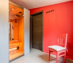 Op de begane grond vind je een volledig uitgeruste keuken waar de eigenaar echt aan alle benodigde keukengerei heeft gedacht, een eetkamer met een TV en een DVD-lounge bij de pelletkachel, een infraroodcabine en een toilet. En boven, 2 slaapkamers van 3 personen en 2 badkamers voor het comfort van elk.