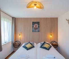 De chalet beschikt over 5 slaapkamers en 3 badkamers, wat voldoende ruimte biedt voor iedereen om zich comfortabel te voelen. Voor gezinnen met jonge kinderen is er een babybedje en een kinderstoel beschikbaar. Huisdieren zijn ook welkom, met ruimte voor 2 honden.
