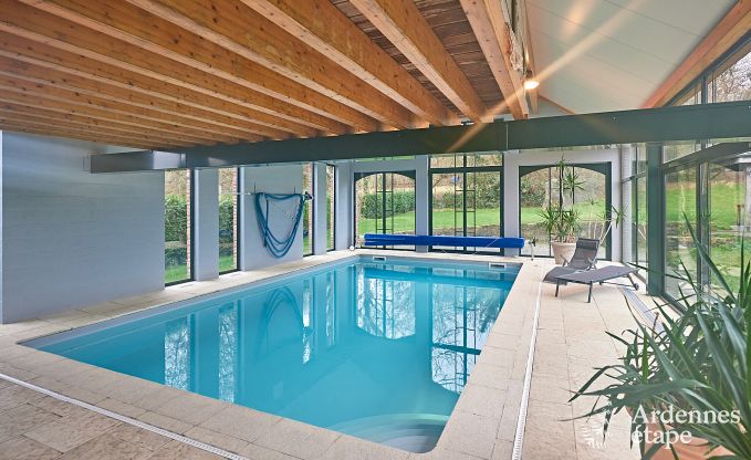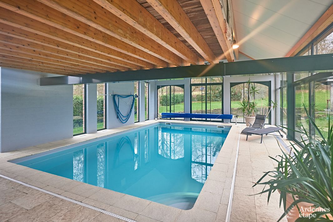 Deze grote vakantiehuis in de Ardennen heeft alles om uw verblijf tot een succes te maken! Met 8 kamers, overdekt zwembad, sauna, speelzaal. Voor elk wat wils!