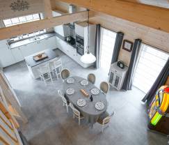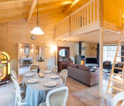 De landelijke stijl en het veelvuldige gebruik van hout verlenen deze chalet een warme uitstraling zoals je die in de bergen vaak aantreft! De woonruimte is open en helder en bestaat uit een eetzaal met een authentieke jukebox die voor aangename achtergrondmuziek zorgt op om het even welk moment van de dag. Neem plaats bij de houtkachel in de zitkamer of trek je terug in de infraroodcabine voor een relaxatiesessie. De chalet is uitgerust met 3 slaapkamers, waarvan er één een privébadkamer heeft, en in totaal 2 badkamers. Het overdekte terras van 20 m² is heerlijk om in alle sereniteit van de tuin en de buitenlucht te kunnen genieten. Waarom op de petanquebaan in de tuin niet eens een partijtje petanque spelen?  Er staat tevens een privéparking met 3 parkeerplaatsen tot je beschikking. Ook baby-uitrusting is aanwezig.