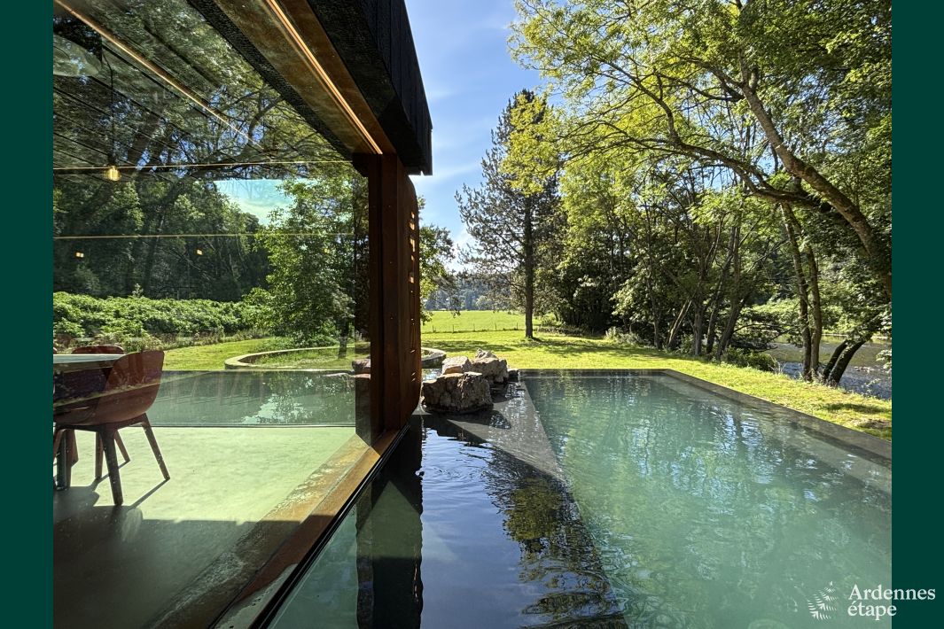 De woning is uitgerust met een (onverwarmd) zwembad en een buitenjacuzzi die het hele jaar door toegankelijk zijn. Het privéterras en de privétuin met uitzicht, comfortabel tuinmeubilair en barbecue nodigen uit om te genieten van een kop koffie in de ochtendzon, een glas wijn bij zonsondergang of een heerlijk diner in open lucht.Dankzij de ligging aan het water kan je ook volop genieten van ontspannende momenten aan de oever.