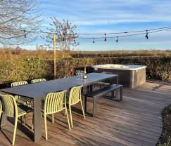 Buiten is er een ruime privétuin met diverse buitenspeeltuigen en een comfortabel terras met buitenjacuzzi en tuinmeubilair. Voor de sportievelingen is er een beveiligde fietsenstalling en een fietsverblijf met een reinigingskit, ideaal om na een dag fietsen alles netjes achter te laten.
