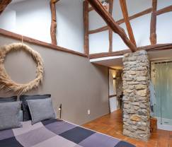 De slaapkamer is comfortabel en biedt een goede nachtrust. Er is 1 badkamer die modern en praktisch is ingericht. Voor extra ontspanning kun je gebruik maken van de jacuzzi, een absolute troef van deze vakantiewoning. Stel je voor: na een dag vol activiteiten in de omgeving, kun je heerlijk ontspannen in de jacuzzi met je geliefde.