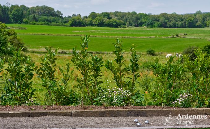 Buiten word je verrast door de ruime privétuin en een privéterras met een adembenemend uitzicht. Hier kun je straks genieten van de houtbarbecue, ontspannen bij de vuurkorf of in de hottub! Voor de speelvogels is er een petanqueveld en fietsliefhebbers zullen blij zijn met de beveiligde fietsenstalling.