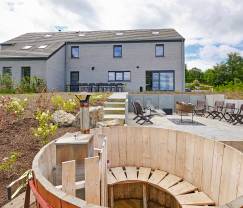 Buiten word je verrast door de ruime privétuin en een privéterras met een adembenemend uitzicht. Hier kun je straks genieten van de houtbarbecue, ontspannen bij de vuurkorf of in de hottub! Voor de speelvogels is er een petanqueveld en fietsliefhebbers zullen blij zijn met de beveiligde fietsenstalling.
