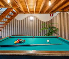 In de gezellige woonkamer staat een open haard klaar om knusse avonden te verzorgen, terwijl je kunt ontspannen in de outdoor jacuzzi of de sauna. Voor de sportievelingen en spelletjesliefhebbers is er een biljart, een tafelvoetbalspel en een pingpongtafel. De speelkamer is uitgerust met diverse kinderspellen en biedt volop vermaak voor jong en oud.
