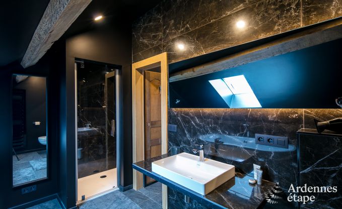 Er wacht je een onvergetelijk verblijf in dit prachtige, moderne en smaakvol ingerichte vakantiehuis. Dit voormalige jachtpaviljoen straalt de klasse en elegantie van een modern hotel uit. Elke kamer ziet eruit als een luxesuite die zo uit een interieurmagazine lijkt te komen. Op de muren, de meubels, in de keuken of op de vloer: zwart is zeer aanwezig en geeft het huis een luxueuze uitstraling. Een geslaagde ingreep van de broer van de eigenaar, die als architect instond voor de renovatie. Dit vakantiehuis vertelt dan ook een heus familieverhaal. De kinderen zijn niet weg te slaan uit de tv-kamer , terwijl jij geniet van een aperitief op het terras, in de tuin of bij het haardvuur. Wat wil je nog meer?