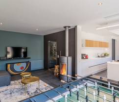 Als je op zoek bent naar ontspanning, dan zit je hier goed. De woning beschikt over een ontspanningsruimte met een jacuzzi en een sauna, waar je heerlijk kunt relaxen. Voor wie van spelletjes houdt is er een kicker. Buiten vind je een privétuin en een privéterras, waar je kunt genieten van de rust en de natuur.