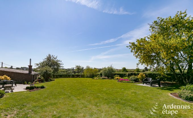 Aangenaam verblijf, heel mooie tuin met verse kruiden. Mooi uitzicht naar velden vanuit het huis. Alles voor de kindjes. Schommel, speelkamer, zorgtafel, bedje, zelfs twee kinderstoelen. Eentje van Ikea met tafelblad en een groter stoel voor een peuter ook met tafelblad. Alles was dus aanwezig. Wij vonden het een grote en goed uitgeruste keuken. Mixer, croque, gourmet, en alle andere standaard gerei was aanwezig. Alleen een goede snijplank ontbrak. Heel ruime koelkast en vrijstaande grote diepvries. Ook grote kamers, 1 badkamer met een klein bad. Wel een heel ruim douche. Zeker en vast aangename eigenaars. Verwelkomt met verse eitjes van eigen kippen en streek bier Chimay. Mevrouw was beschikbaar voor opmerkingen of problemen en stipt bij aankomst en vertrek. Minpuntjes vond ik dat er geen echte wandelwegen zijn vertrekkende vanuit het huis. Je zit echt op asfaltwegen te wandelen en wordt vaak voorbij gestoken door autos. Het is wel een beetje afgelegen maar alles is eigenlijk vlakbij. Je moet je al eerder verplaatsen om bosgebieden te zien. Vonden wij minder met een baby dat om de 3-4u moet eten om dan alles in te pakken en rond te rijden. Het huis zelf is een beetje verouderd. Hier en daar zie je onafgewerkte delen of dingen dat men zou moeten opknappen. Eén van de slaapkamers had ook een onaangename geur door leiding van de badkamer. Wel een goede plus punt was dat er een wasmachine was. Wel een beetje verouderd dus wij moesten zoeken hoe die juist werkte maar zeker handig als je kinderen hebt. Verder is dit verblijf wat je er zelf van maakt. Met goede gezelschap is dit zeker geen slecht verblijf. Met een beetje goed weer kun je zeker genieten van de prachtige tuin met een bbq. Op en top. Ik zou wel terugkomen. ?