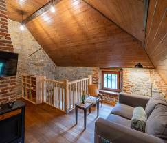In de gezellige woonkamer kan je heerlijk ontspannen na een dag vol avontuur. Buiten wacht een intieme privétuin met tuinmeubilair, waar je geniet van een prachtig uitzicht op de omliggende velden en bossen. Voor de kleintjes is er een gezamenlijke speelruimte beschikbaar, gedeeld met een ander vakantiehuis. Komen jullie met de elektrische wagen? Dan kunnen jullie gebruik maken van de laadpaal.