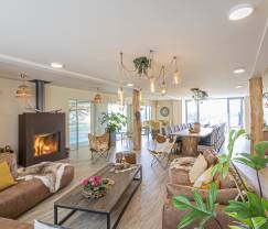 De eigenaars van dit perfecte vakantiehuis voor groepen hebben heel veel zorg besteed aan de inrichting, waarbij hout en edele materialen een hoofdrol spelen. Geniet van een aperitief op een grote kruk rond oude vaten, nestel je in een fauteuil van dierenhuid terwijl je opwarmt aan het houtvuur ... of bewonder het oneindige landschap vanuit je luie zetel. Hier staat alles in het teken van totale ontspanning!