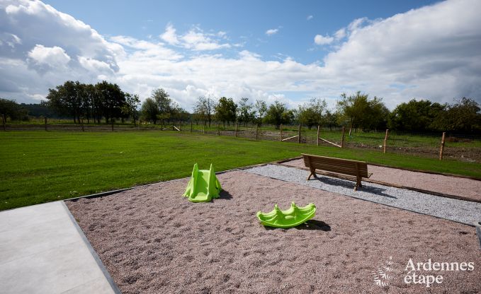 Een van de grootste troeven van deze vakantiewoning is het binnenzwembad. Ongeacht het weer kan je dus altijd een duik nemen. Buiten vind je een ruime privétuin met een schommel en een glijbaan. Voor de speelvogels is er een petanqueveld en een biljarttafel aanwezig. De speelkamer biedt extra vermaak met een air hockey tafel en andere spelletjes.