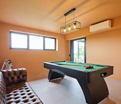 Voor ontspanning en vermaak biedt de villa een ontspanningsruimte met een infraroodcabine en een Italiaanse douche. Er is ook een speelkamer met een biljarttafel en een bar. De privétuin en het terras met uitzicht zijn ideaal voor buitenactiviteiten en barbecues. De villa is ook hondvriendelijk, dus je hond mag mee.