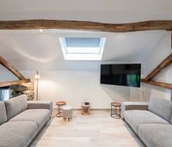 Met 6 slaapkamers , 3 badkamers en een fantastische wellnessruimte heet dit vakantiehuis je van harte welkom voor een aangenaam groepsverblijf , weg van alles. Sla de deur van deze prachtig gerenoveerde graanschuur open en beleef samen onvergetelijke momenten . Modern comfort en de charme van weleer vormen een beeldig plaatje dat zo in een interieurmagazine mag. Denk muren in...