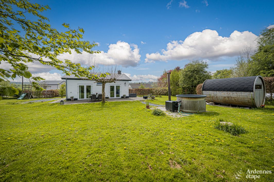 Naast een praktische en functionele indeling, biedt deze gite in de Ardennen ook apparatuur voor een ontspannen en rustige vakantie. Zo vind je er een sauna en een Noords buitenbad om te ontspannen na een dag wandelen. De tuin is ook een plaats waar je waarschijnlijk veel tijd zult doorbrengen, vooral op zonnige dagen. Je geniet hier van een mooi uitzicht en een landelijke omgeving, en daarnaast profiteer je van 2 terrassen met tuinmeubilair. Het interieur van de vakantiewoning is net zo heerlijk met een grote leefruimte die de woonkamer combineert met een volledig uitgeruste open keuken naar de eetkamer. Je zult zeker aangename momenten doorbrengen met je gezin tijdens een aperitief of een goede maaltijd. Tot slot vind je in dit verblijf 2 slaapkamers en 1 badkamer.
