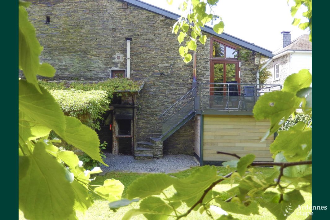 De tuin is gelegen in het zuiden en beschikt over een barbecue op houtvuur, tuinmeubels, een schommel en petanqueveld. Ook rondom de woning zijn alle faciliteiten aanwezig om op en top te genieten van jouw vakantie in de Ardennen. Het vakantiehuisje ligt op zo'n 500 meter van een bos en op 400 meter van een RAVeL. Ook restaurants, winkels, de markt et cetera bevinden zich in de nabije omgeving.