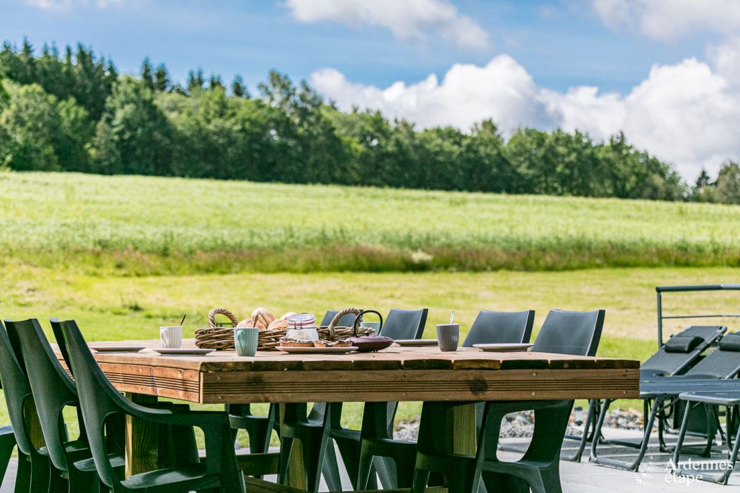 Buiten geniet je van een bijzonder grote tuin en een terras dat aan alle kanten uitkijkt over de natuur.Het dorpje Gouvy in de provincie Luxemburg staat wereldbekend om het Gouvy Jazz & Blues Festival. Dat zomerse evenement moet je absoluut eens meegemaakt hebben. Er staan dan ook altijd grote namen op de affiche, er hangt steeds een gezellige sfeer en de aankleding ziet er steevast idyllisch uit.