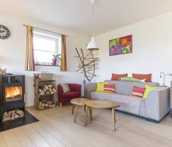 Waar wij absoluut zeker van zijn? Wie in deze charmante vakantiewoning met vrolijk interieur verblijft, komt zo in vakantiestemming. Beeld je in: racletten met je favoriete mensen rond één tafel, een partijtje pingpong of badminton, de kids die in de zandbak ravotten terwijl jullie genieten van het mooie weer (en heerlijk streekbier) op het zonovergoten terras, een leuke spelletjesavond bij een knisperend vuur, een uitgebreide barbecue (in de herfst en winter ook gezellig met een extra dikke trui!). Hier geniet het hele gezin, ongeacht het seizoen!