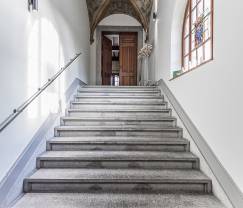 Je hebt het kasteel nog maar via een grote deur betreden of je wordt al overweldigd door het trappenhuis! De ruimte van alle vertrekken van dit kasteel zullen je overigens met verstomming slaan.
