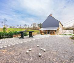 Het huis is heel rustig gelegen en kijkt uit op het omliggende platteland. In 2022 werd het op vakkundige en originele manier gerestaureerd. Zo werden in de keuken de natuurstenen wanden en gewelven bewaard terwijl voorzien werd in alle mogelijke moderne comfort. Ook de 4 slaapkamers en de 3 badkamers combineren modern comfort met een authentieke toets. Ontspanning staat hier centraal. Met onder meer een knusse zitkamer en een speelkamer met een voetbaltafel en andere spelletjes. Op het overdekte terras kan je niet alleen barbecueën maar ook een spelletje darts spelen. In de tuin ligt dan weer een heuse petanquebaan. Fietsliefhebbers genieten de geruststellende zekerheid van een beveiligde fietsenstalling en het gemak van een reinigingskit.